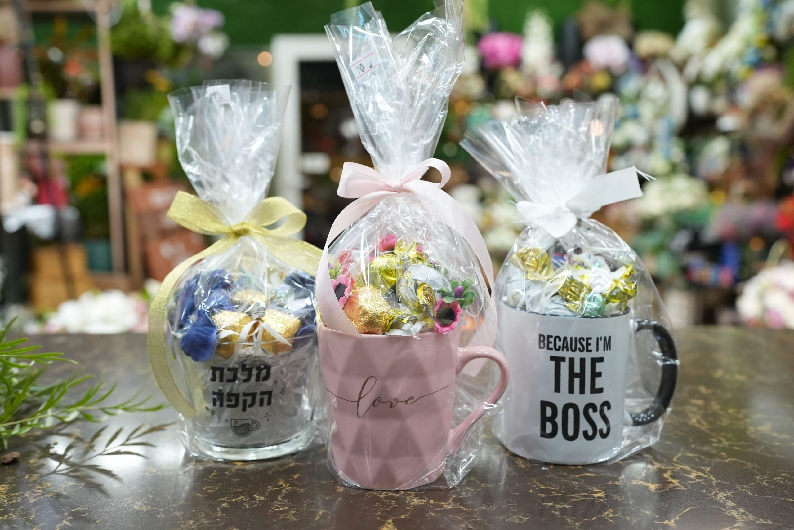 כמות של כוס שוקולד עם כתובית